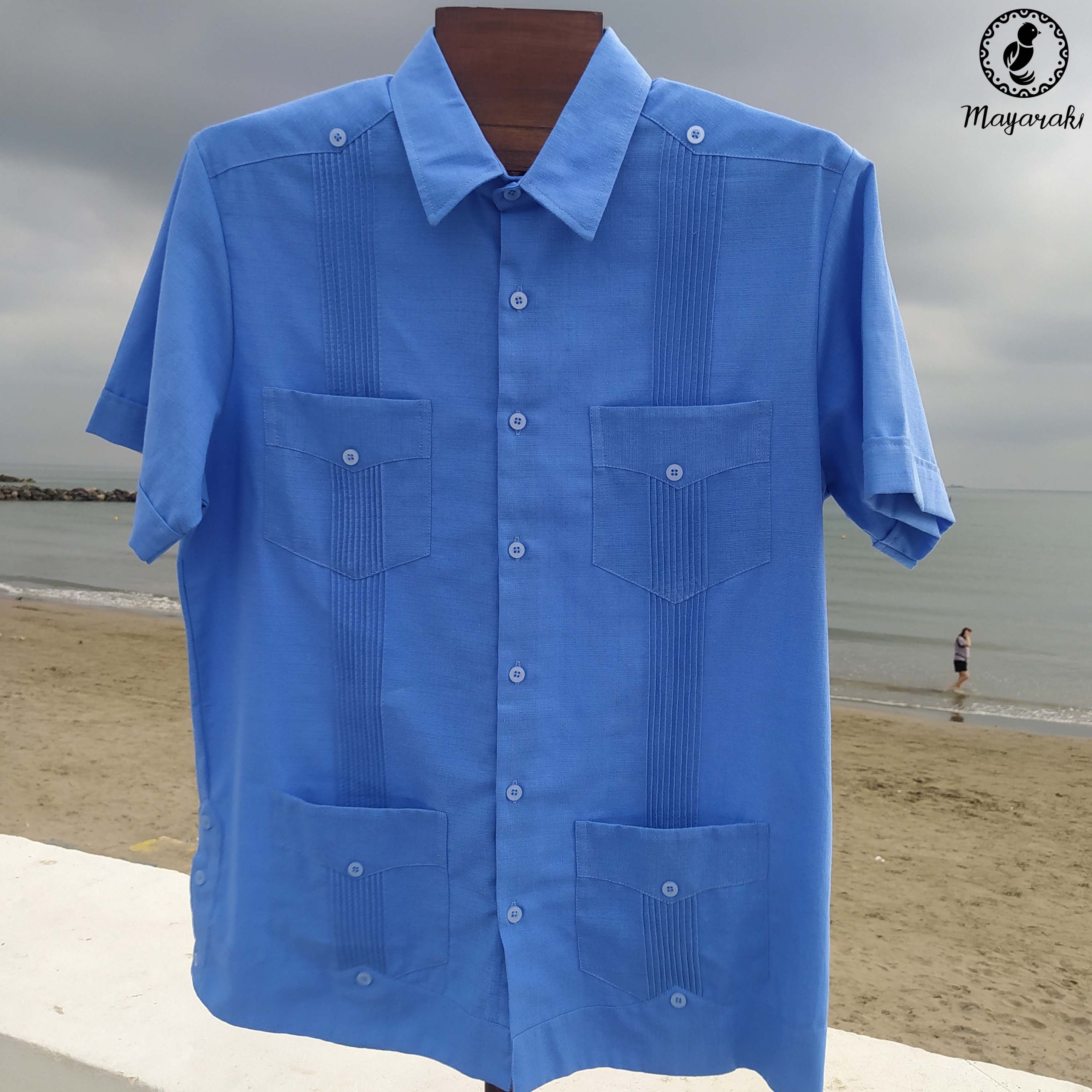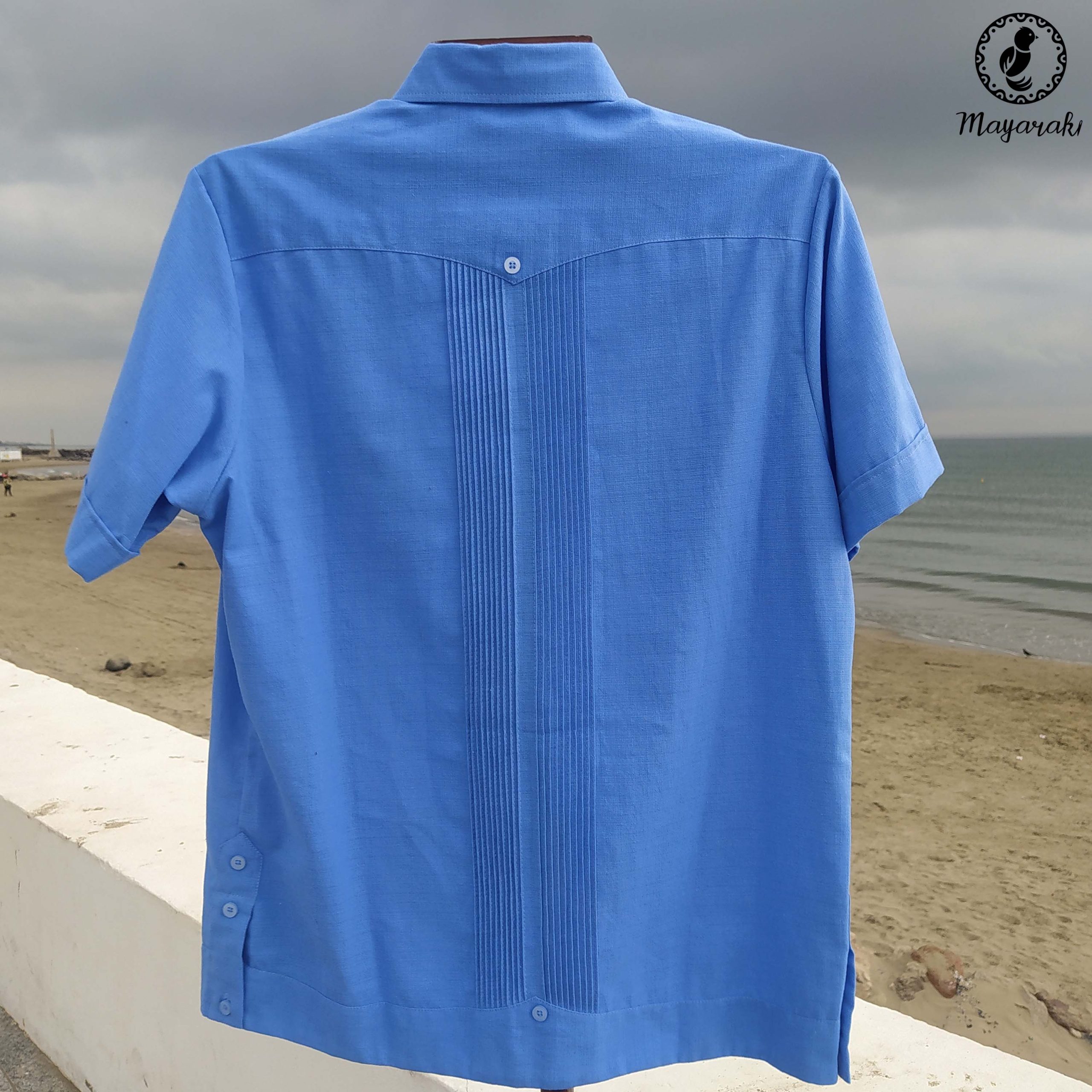 Esta auténtica guayabera tiene cuatro bolsillos en la parte delantera que, en combinación con las clásicas alforzas, le dan un toque de elegancia. Elaborada en Yucatán, los colores claros de la tela la convierten en una prenda juvenil y versátil, ideal para usarse en cualquier ocasión. Al ser confeccionada en 50% algodón / 50% lino, permite que te mantengas siempre fresco.