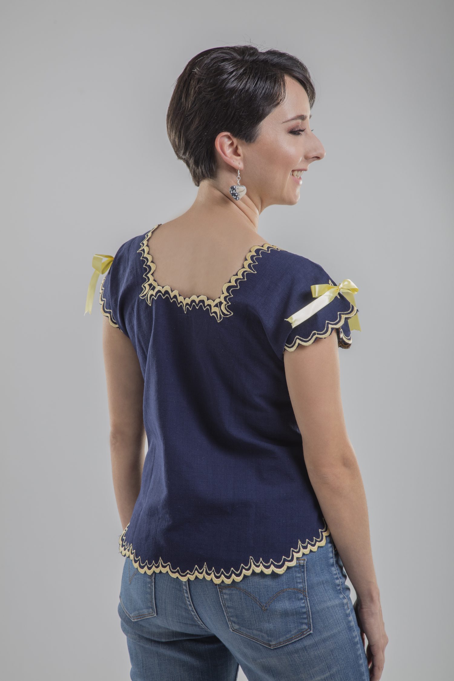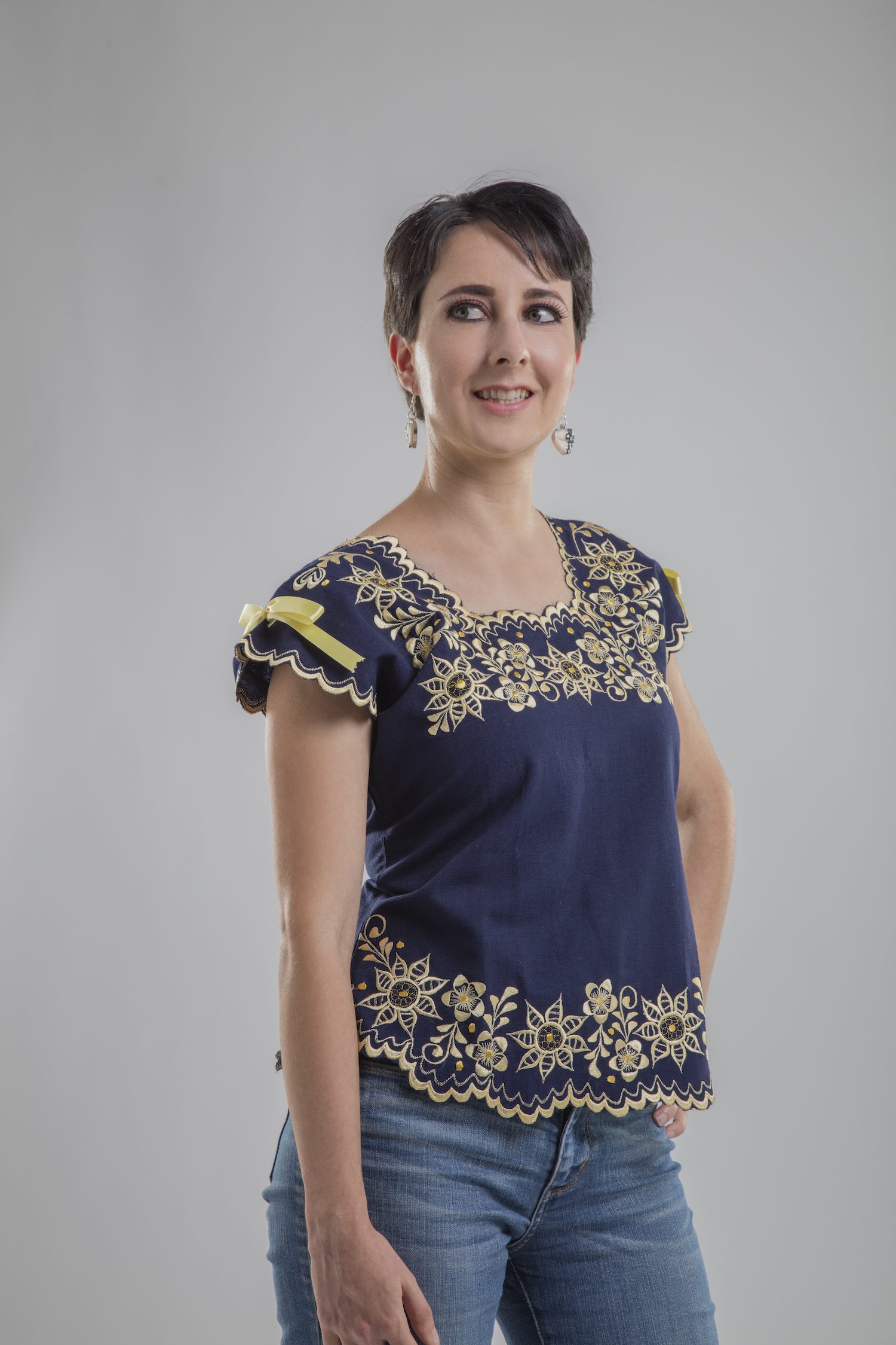 ¡La blusa Maya es la combinación perfecta para un par de jeans, shorts o una falda! Cuenta con un detallado trabajo de bordado de un solo color con flores alrededor del escote y también en su parte inferior redondeada. Los moños de listón en ambos hombros le dan un aspecto muy dulce.