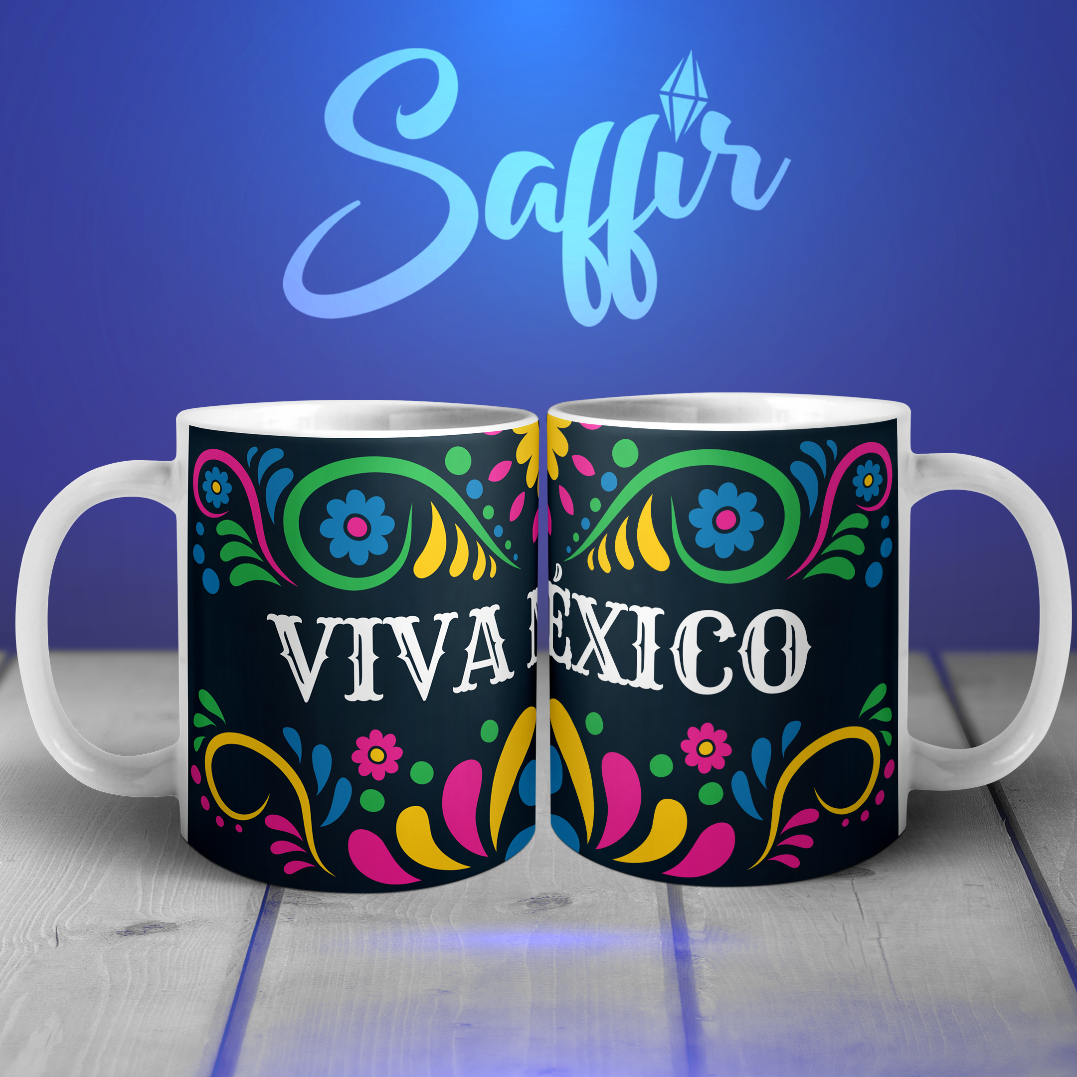 Taza azul marina ¡Viva México!